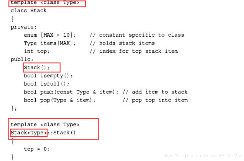 7、采用模板时,将使用模板定义替换类声明,使用模板成员函数替换类的成员函数。和模板函数一样,模板类以下面这样的代码开头: