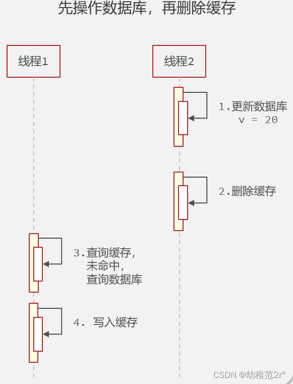 由于对缓存的操作时间效率更高,耗时相对于操作数据库很小,所以先操作数据库,在删除缓存发生数据不一致性的可能性更低。