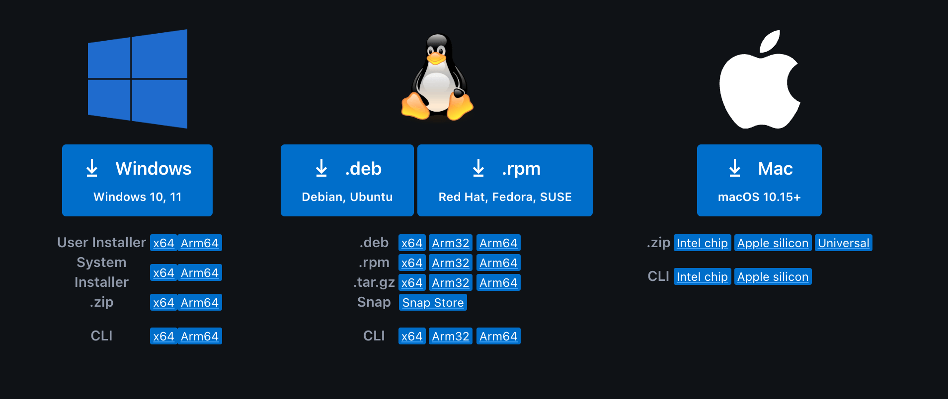 | Linux | Ubuntu 16.04+, Debian 9+, Fedora 30+, CentOS 7+ |