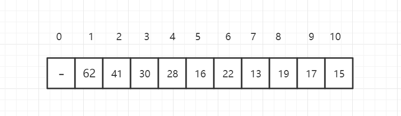 我们可以使用数组存储二叉堆,右边的标号是数组的索引。