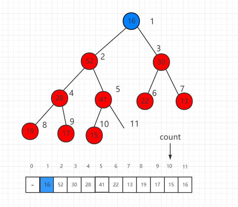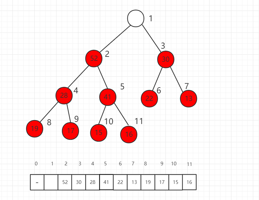 parent(i) = i/2(取整) left child(i) = 2*i right child(i) = 2*i +1