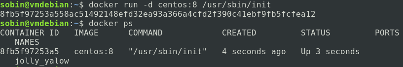 docker run -d centos:8 /usr/sbin/init