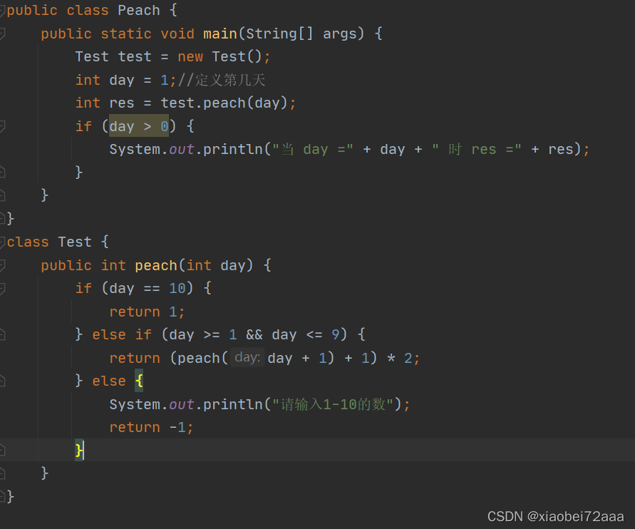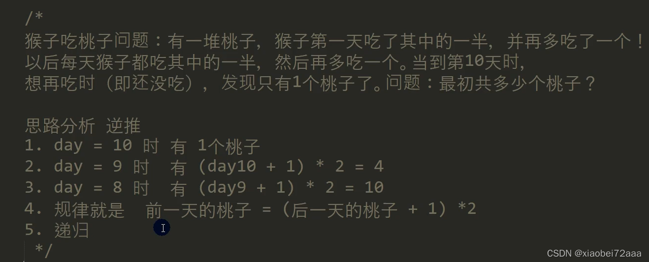 有一堆桃子,猴子第一天吃了其中的一半,并在多吃一个!以后每天猴子都吃其中的一半,并且多吃一个!当第十天时,猴子在想吃(还没吃)时,发现只有一个桃子。