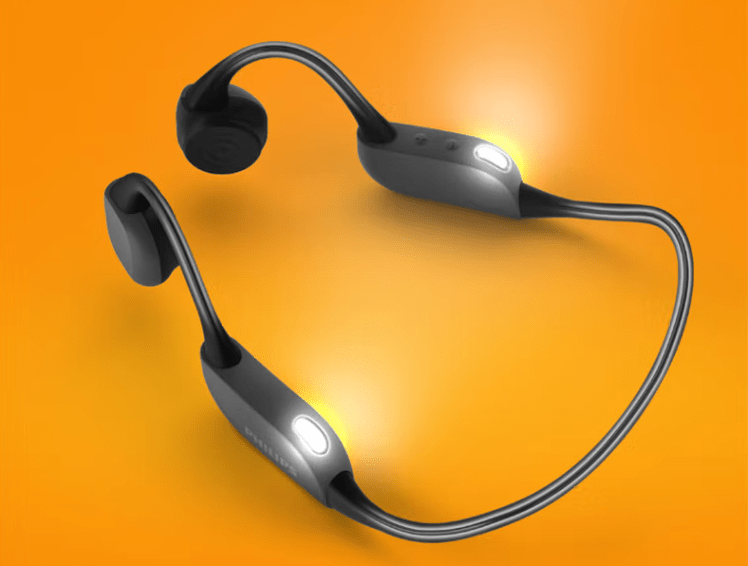 飞利浦A6606整体看上去也非常具有科技感,机身骨架由柔韧的钛合金材质制作而成,可以随意弯折机身不易变形!依旧沿用了飞利浦夜跑灯的设计,下载飞利浦耳机app还可以根据个人及环境需要,打开夜跑灯或者调节夜跑灯频率。耳机搭载了5.2的蓝牙技术,同时在电量方面支持9个小时的续航能力。发声单元采用了15mm骨传导动圈振子搭配开放式声学结构,带来广阔空间感。也因此耳机在音量开到60%的时候是会听见声音的。在防水上面也做到了IP67的防水性能,整体的使用相比上一代耳机的体验好不少!