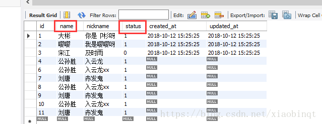 比如这张单表,我们需要在查询结果中将 name 为 '大彬' 的值重新定义了 '角色1',将不是 '大彬' 的值定义为 角色2 ,status = 1 定义为已处理, status=0 定义为 未处理,status=2 定义为 待处理.这个功能就可以使用 mysql 的 case when 来实现.