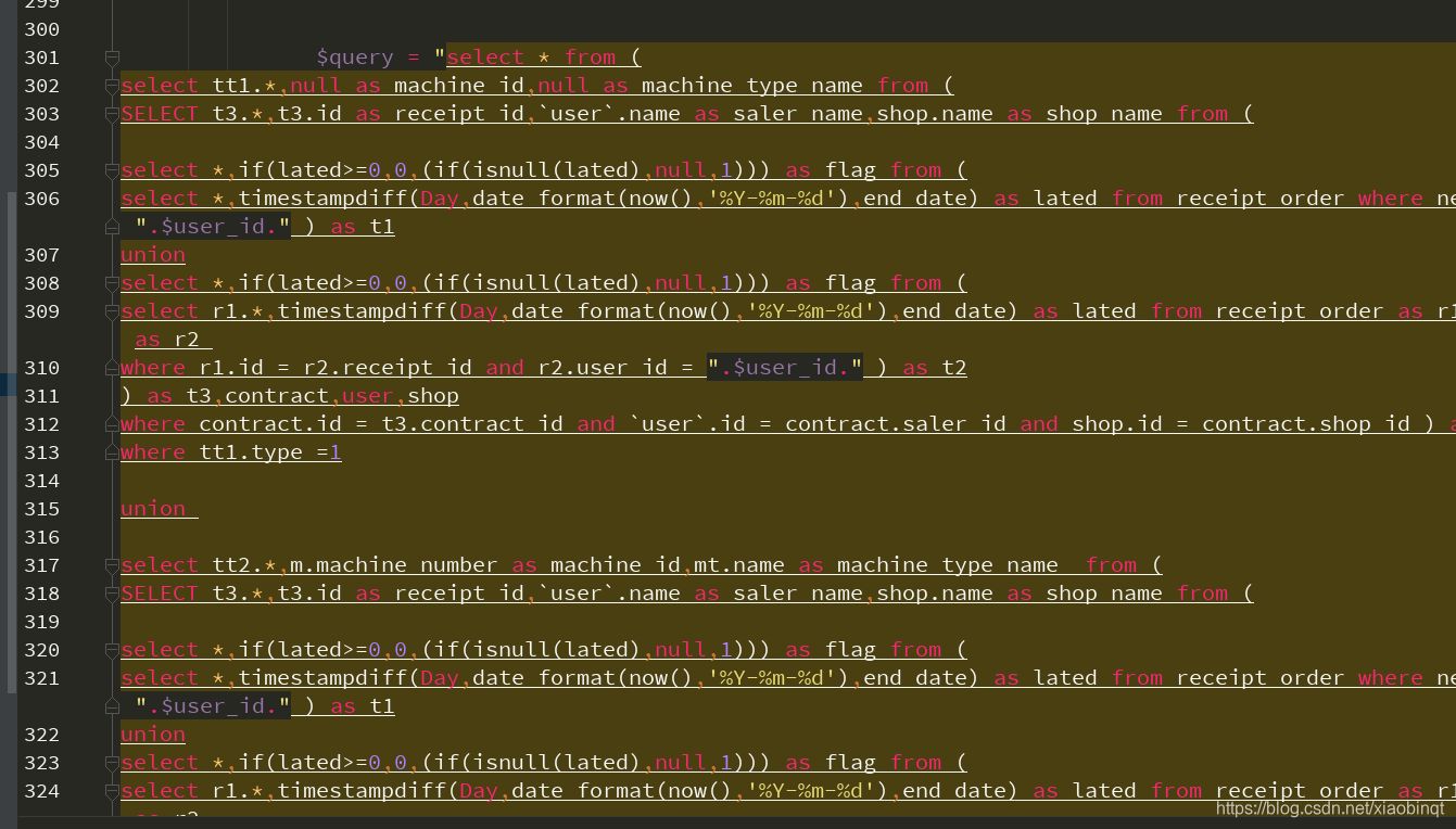 $sql = "(select g.*,cate.name as cate_name,ware.name as warehouse_name from goods as g,category as cate,warehouse as ware