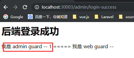 我是 admin guard -- {{ \Illuminate\Support\Facades\Auth::guard('admin')->check() }}