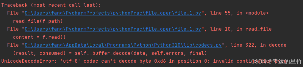 2. 出现“UnicodeDecodeError: 'gbk' codec can't decode byte 0xbf in position 2: illegal multibyte sequence”报错,