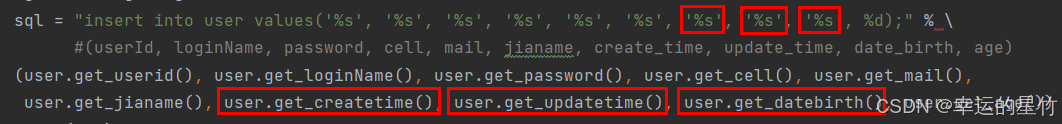 这里出问题的地方就是这个sql语句,我犯的错误是 我认为数据库里用的是datetime类型的数据,所以在sql语句中传数据的部分只用了%s,因为认为datetime日期时间类型不是字符串,结果怎么运行代码,数据库就是写入不了数据。