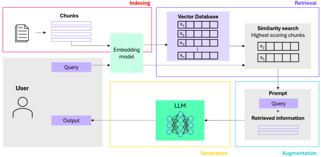 - 随后,利用搜索到的最相关切片来增强(Augment) 用户的原始提示词(Prompt)(利用数据库键值来获取与相关向量对应的文本切片)。