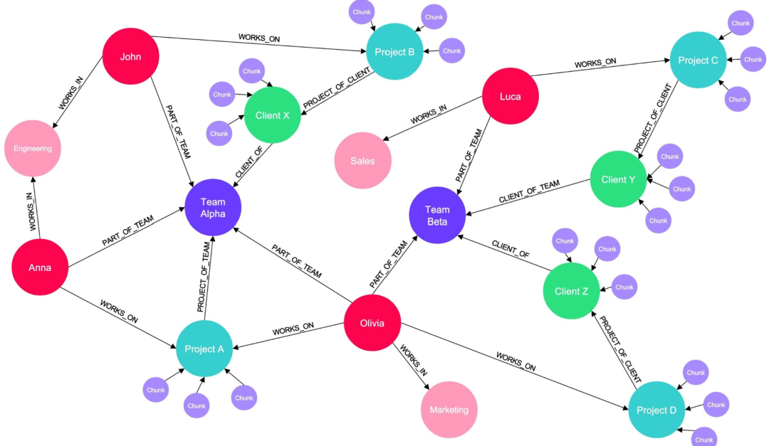- 接着,检索所有连接到该节点的向量(例如:所有连接到“项目 A”的文档切片向量)。