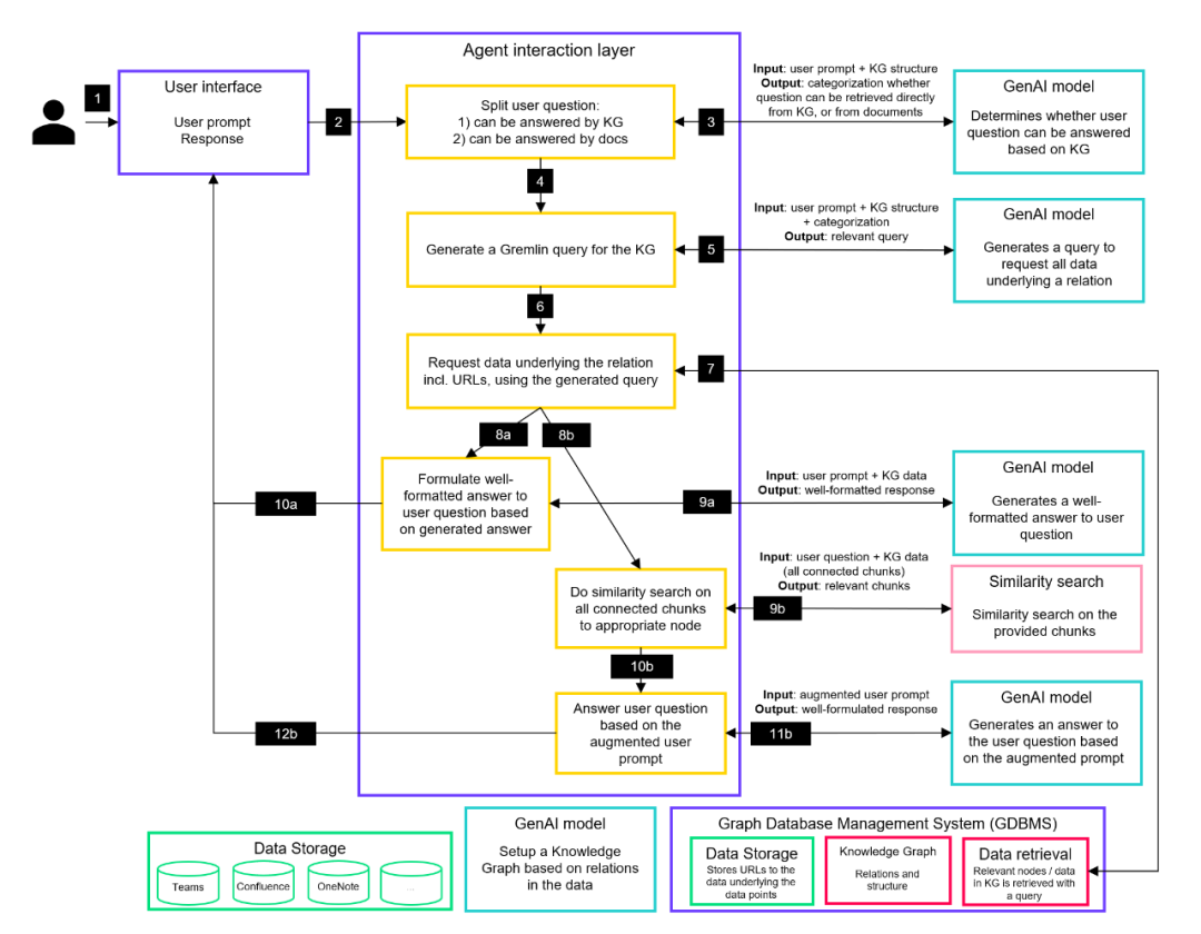 RAG 与知识图谱之间的这种协同效应,创造了一个能够管理多种信息类型的互补系统。这种整合对于企业的内部知识管理尤为重要,因为企业必须有效地利用极其广泛的数据资源。