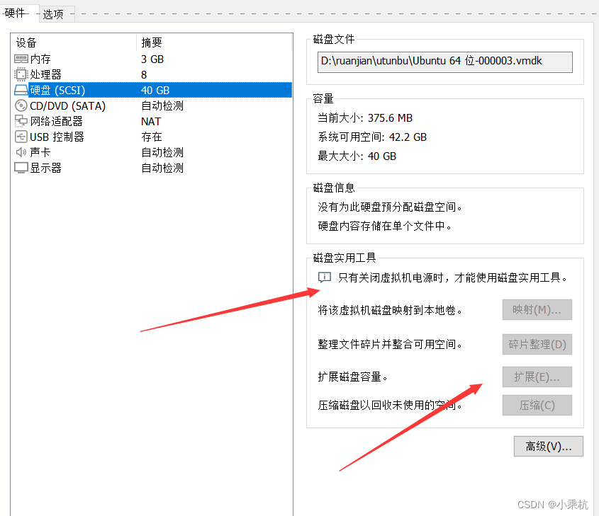 这里点不了扩展,记得清除虚拟机镜像文件;
