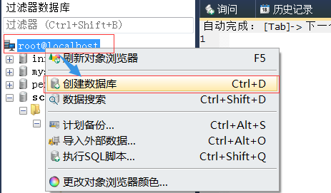 在root@localhost上右键,选择创建数据库