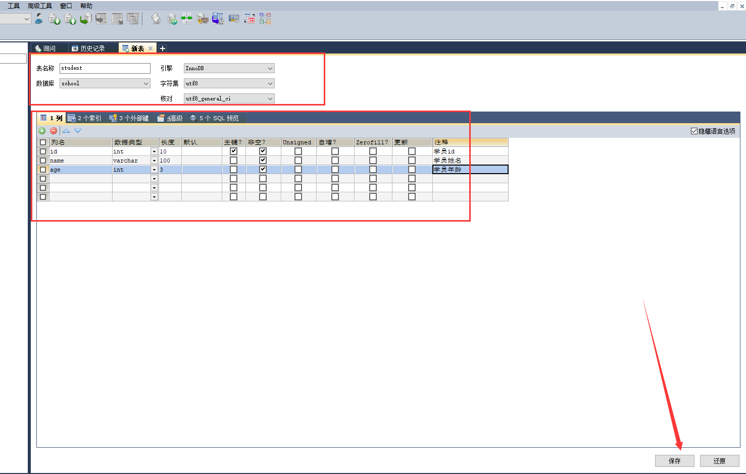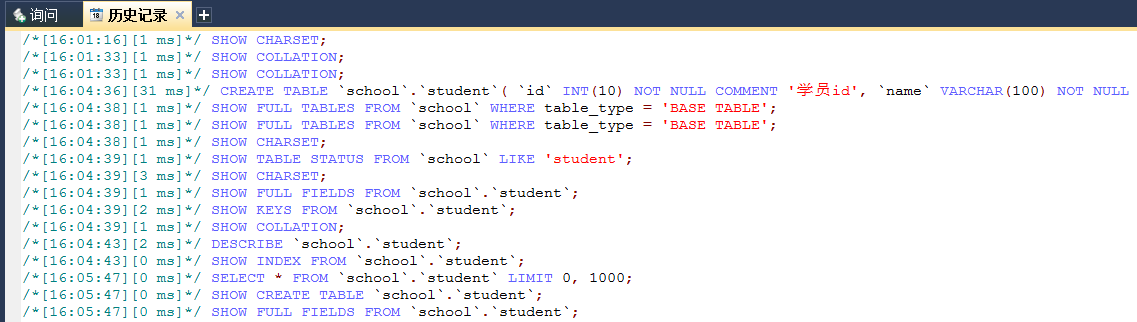注意:每一个sqlyog的执行操作,本质就是对应了一个sql,可以在软件的历史记录中查看。