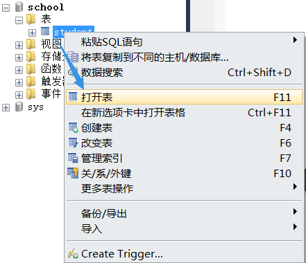 在student表上右键---打开表