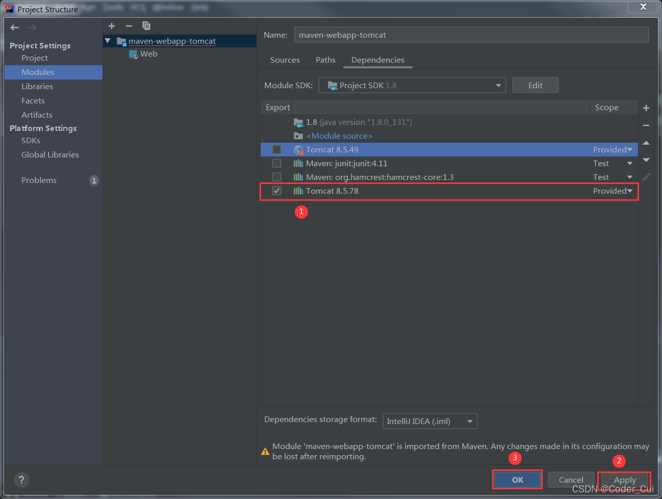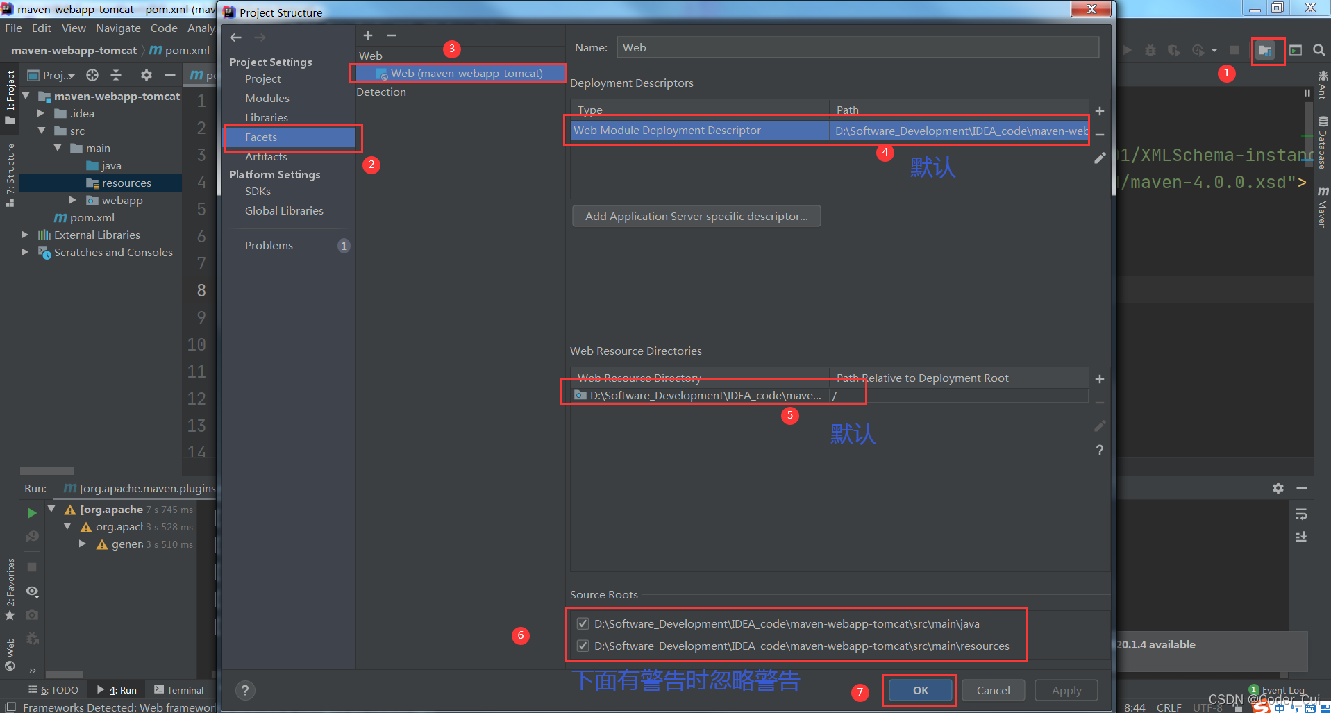 点击Project Structure---Facets---Web(maven-webapp-tomcat)进行配置