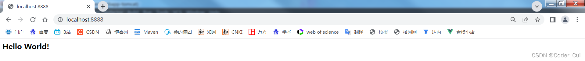 启动项目成功后,浏览器访问路径:http://localhost:8080,显示Hello World!