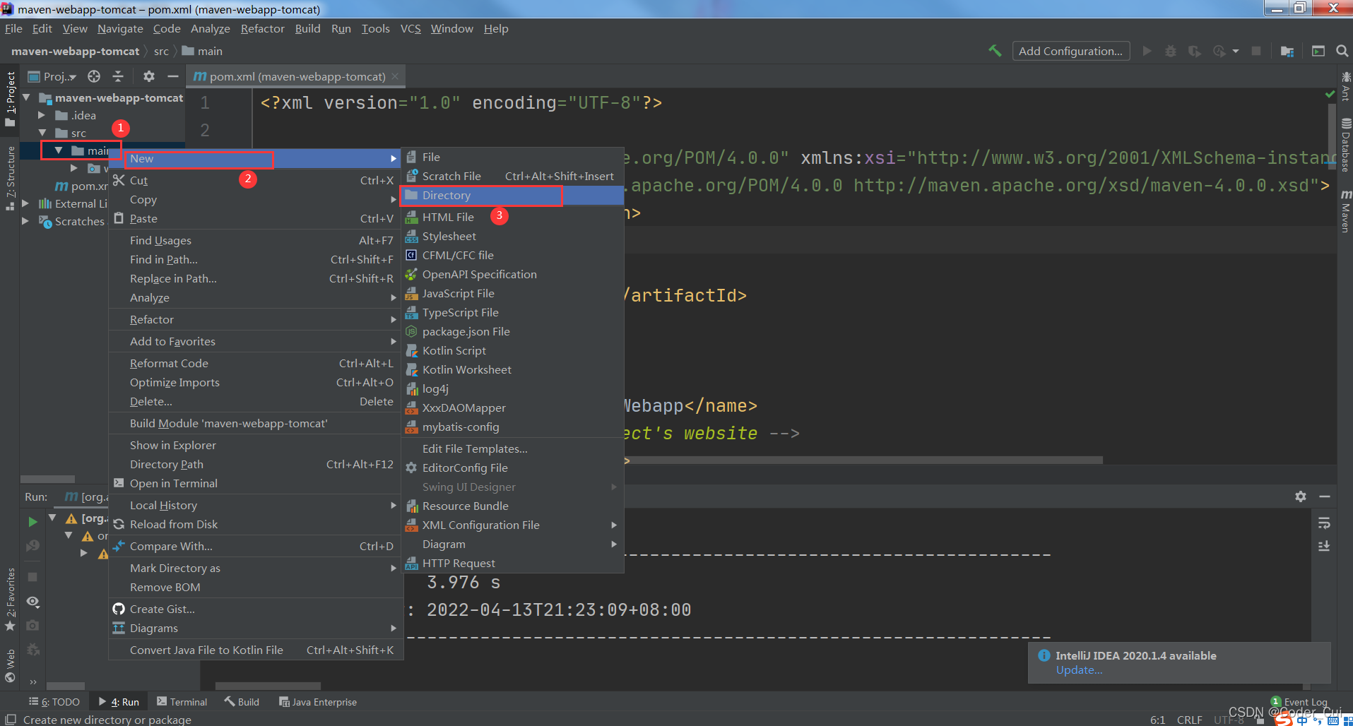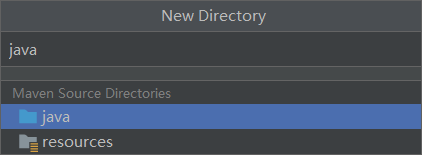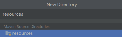 注意:此处不是创建普通的文件夹,要选择点击Directory后出现的那两个java和resources(带有特殊标志)才可以。另外,新建完目录后,刷新一下maven,否则后面关联目录时,可能加载不出来。