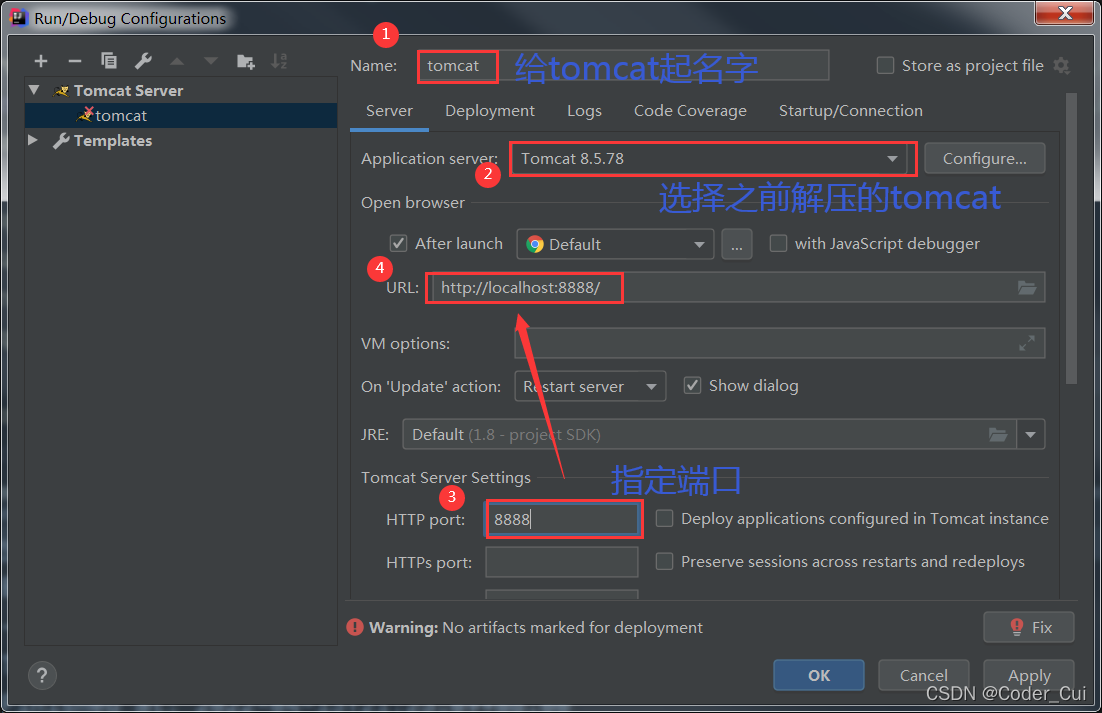 Tomcat参数配置:防止8080端口被占用,此处选用8888
