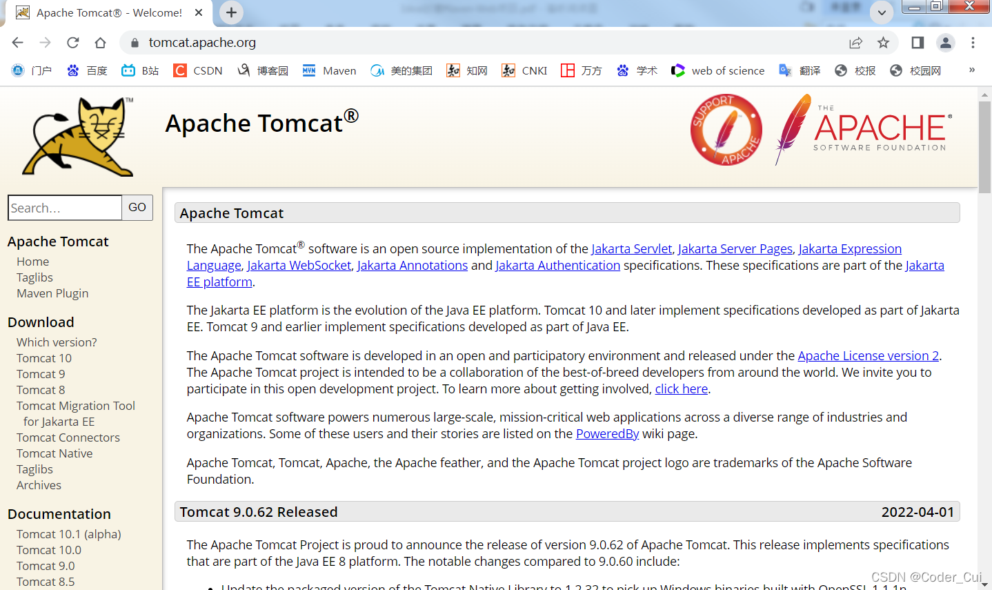 进入tomcat官网:Apache Tomcat® - Welcome!