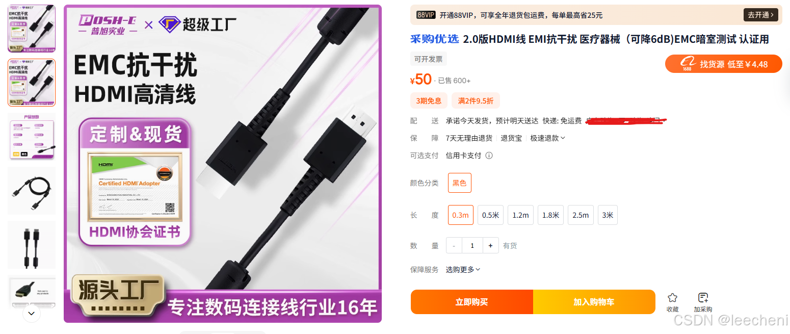 在淘宝上购买这种标明可以过EMI的HDMI线