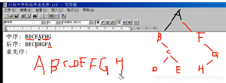 郝斌数据结构入门--P70-树 已知两种遍历序列求原始二叉树