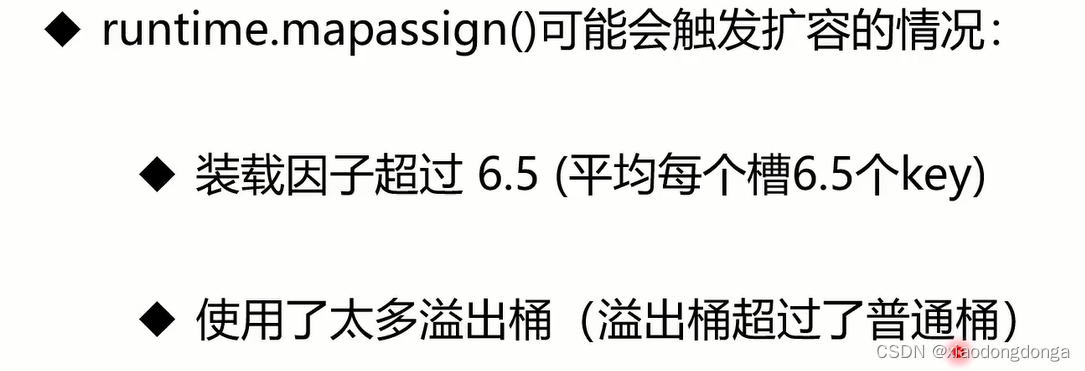 当溢出桶太多时,会导致严重的性能下降,会进行map的扩容