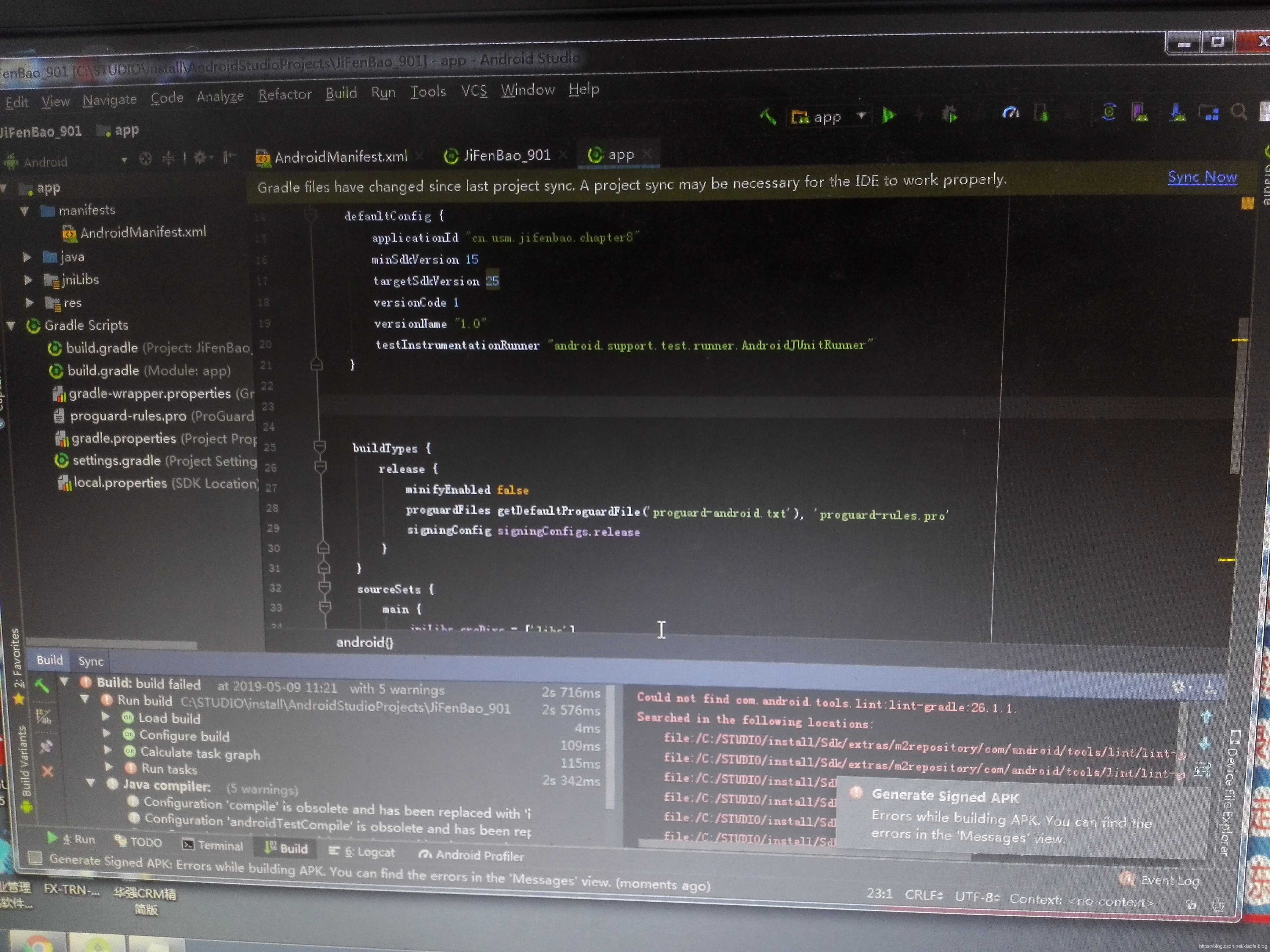 最近在使用Android Studio打包apk时提示错误,无法生成APK文件,然后小编找到了解决方法。