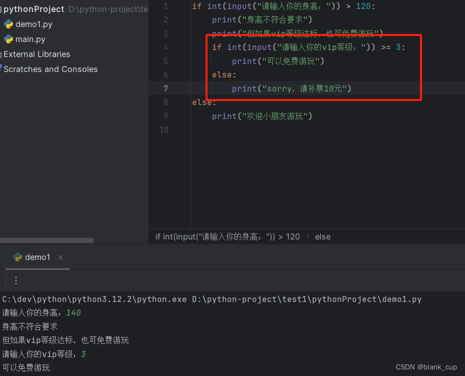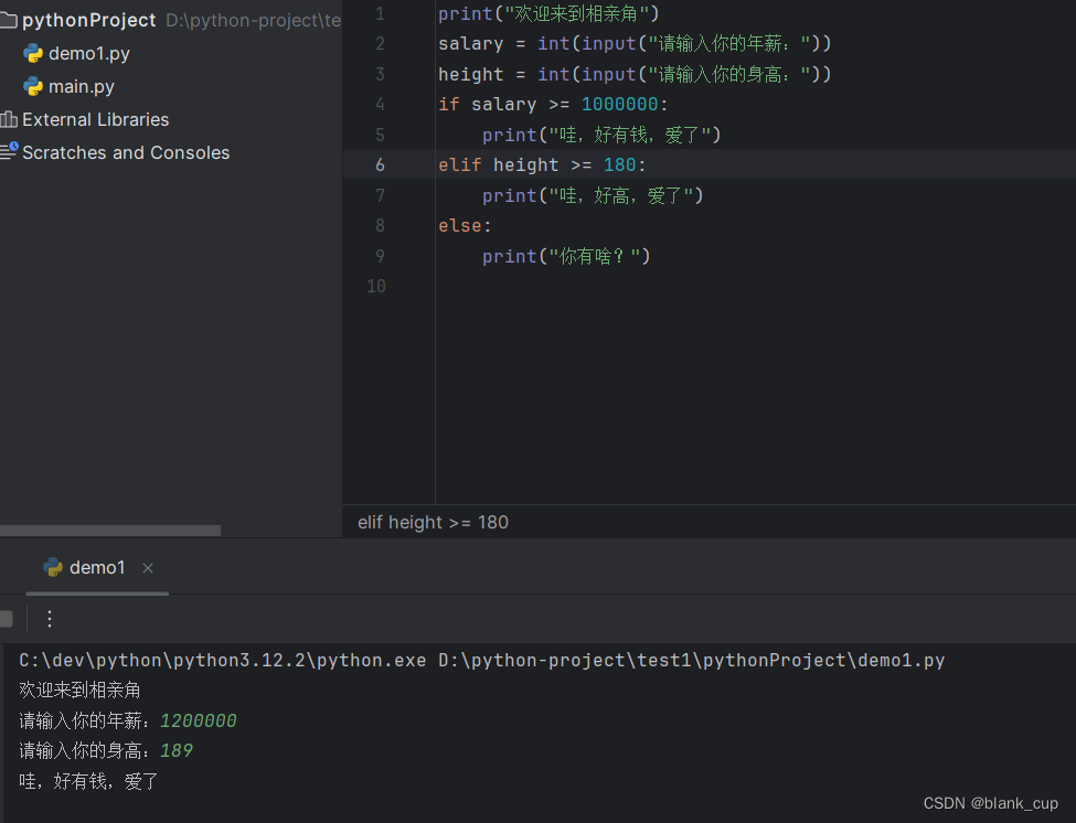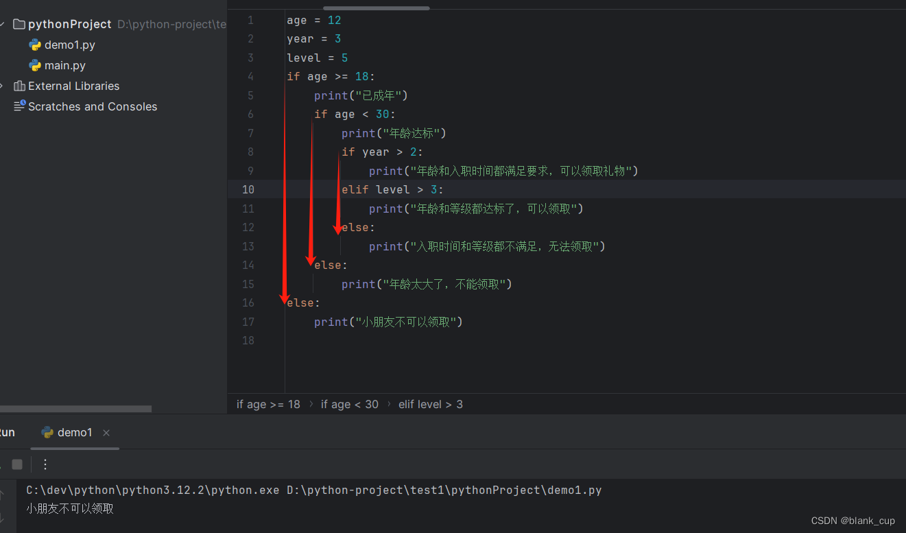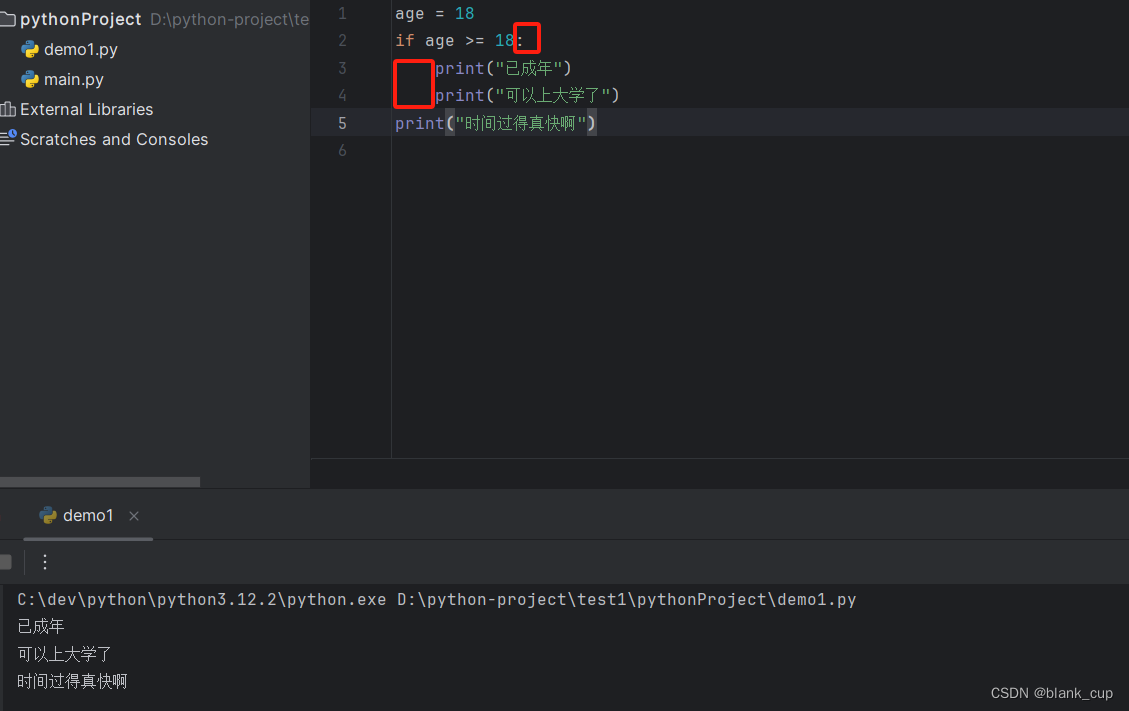 if语句体通过缩进来表示(四个空格,PyCharm会自动缩进)
