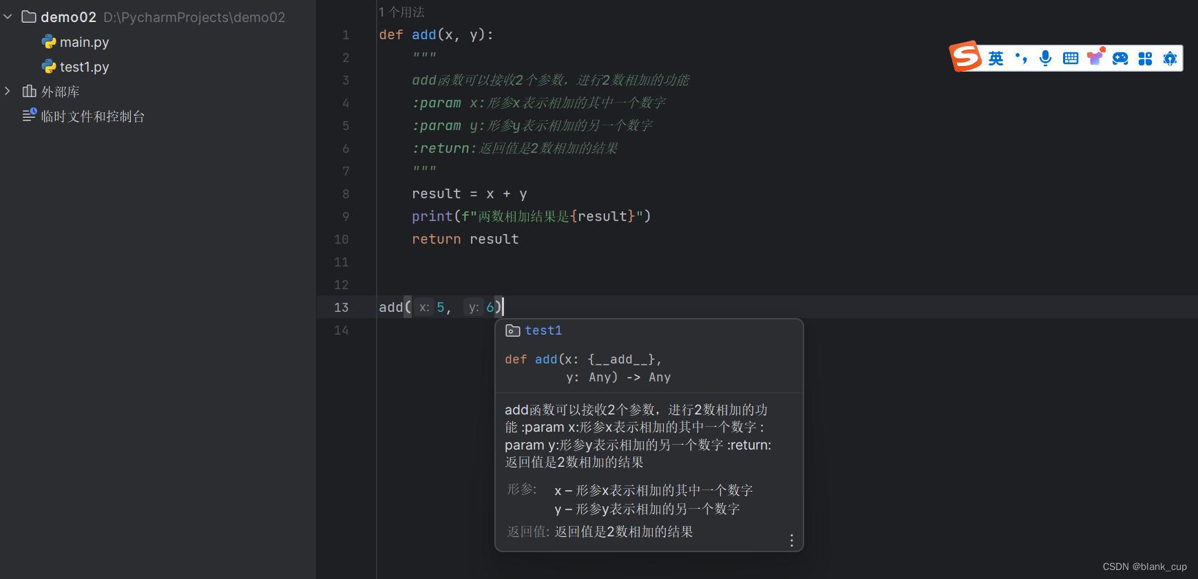 在PyCharm中输入三个""",回车自动就出来了,鼠标悬停到调用处,还能出现函数的说明