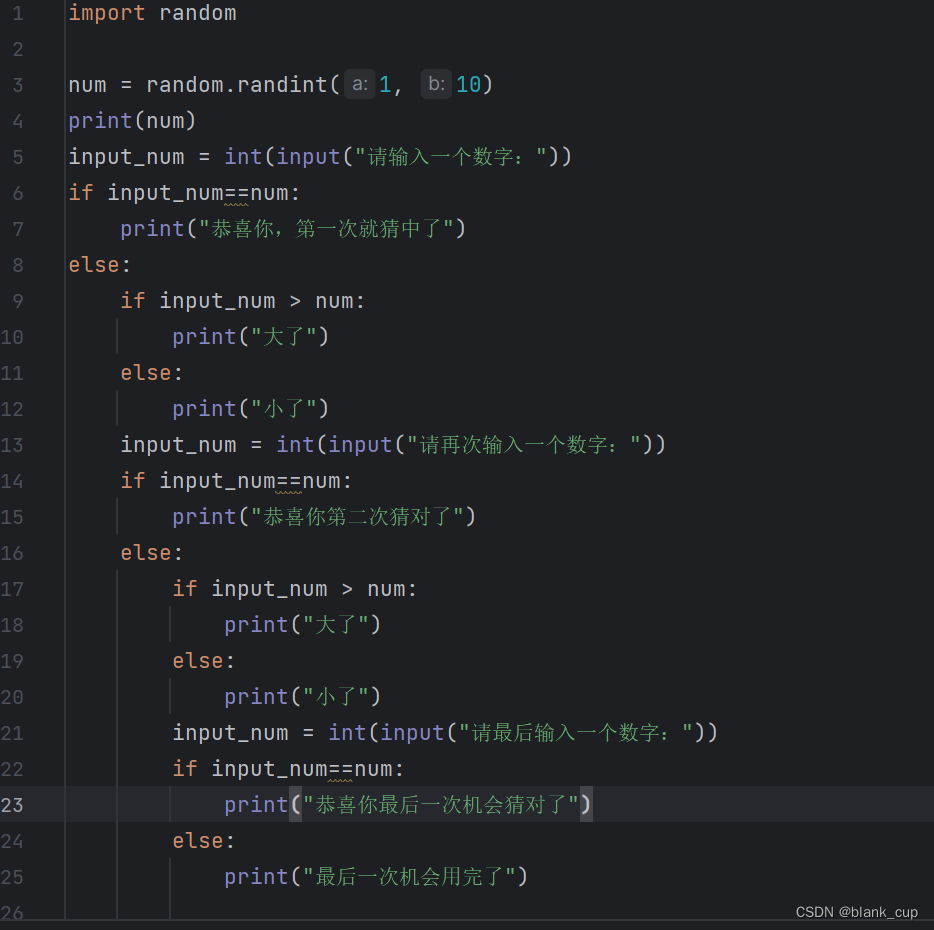 这里除了用break退出循环外,还可以定义一个flag变量,初始为True,当猜对后,flag=False,这样也可以退出循环。