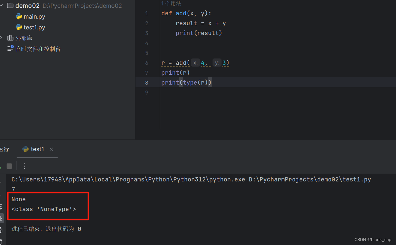 说明:所有函数默认返回None,数据类型type是'NoneType',也可以主动return None