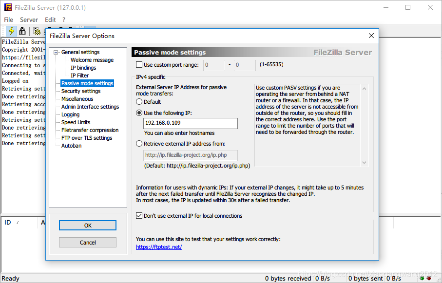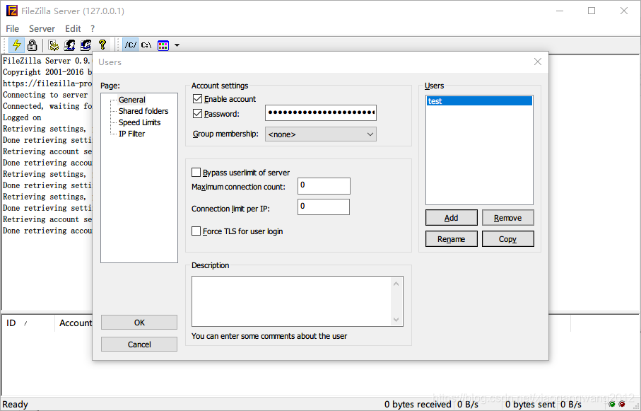 (4)配置完成后可以通过FTP客户端测试服务器是否运行成功。