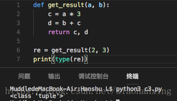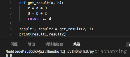返回的多个值,可以使用序列解包的方法进行赋值,即:变量1,变量2,... = 函数(参数1,参数2,...)