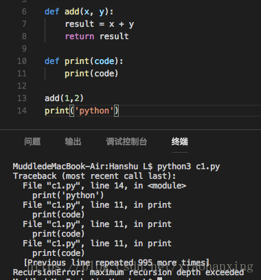 注:以下代码中,print()会形成一个递归函数,运行会报错