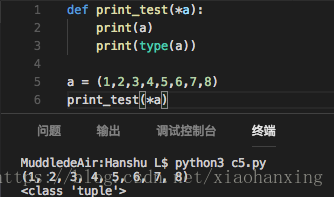 此时若不想结果变为二维元组,可以在传值时,给值前面加一个*,如: