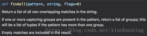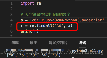 2.1 使用re.findall('正则表达式', 需要匹配的字符串),此方法返回的是一个list