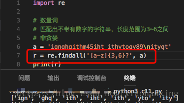 2.(字符串){n},表示查找的时候串字符重复n次,而且是连续重复,中间不可断开,如