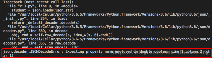 2.python规定json数据最外面要使用单引号,不能使用双引号,否则解析时会报错,如