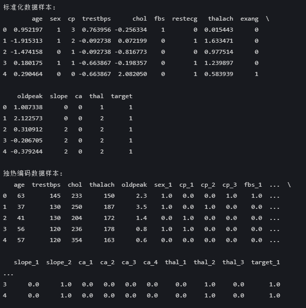 - sex 、 cp 等分类变量保持原始整数类型(标准化不改变分类列)