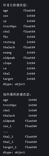 - sex_1 、 cp_1 等独热编码列变为float64(0.0/1.0)