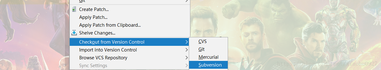 在vsc选项中使用是用git还是svn检出,检出方式同eclipse(两种方式大同小异)