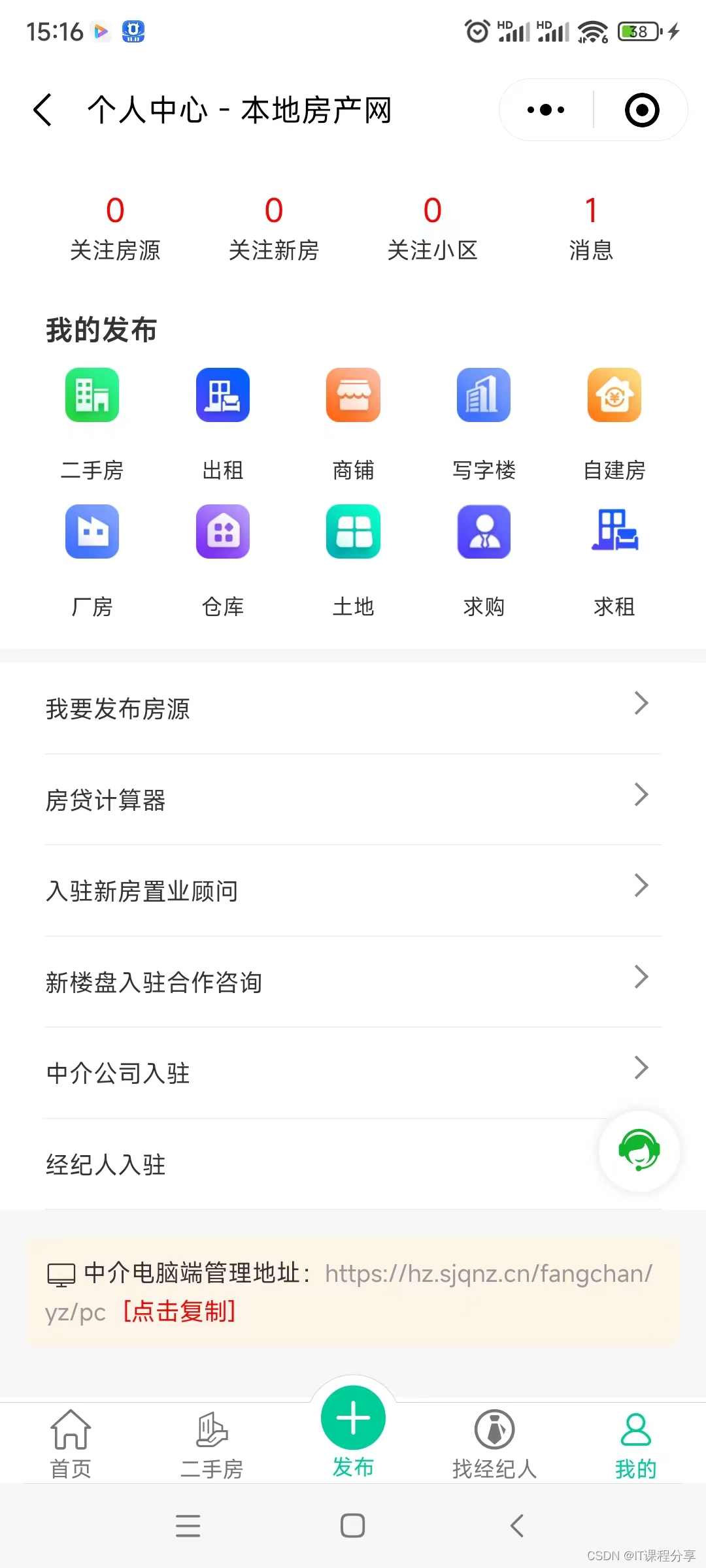 支持二手房、租房、商铺、写字楼、厂房、仓库、土地模块发布房源信息;