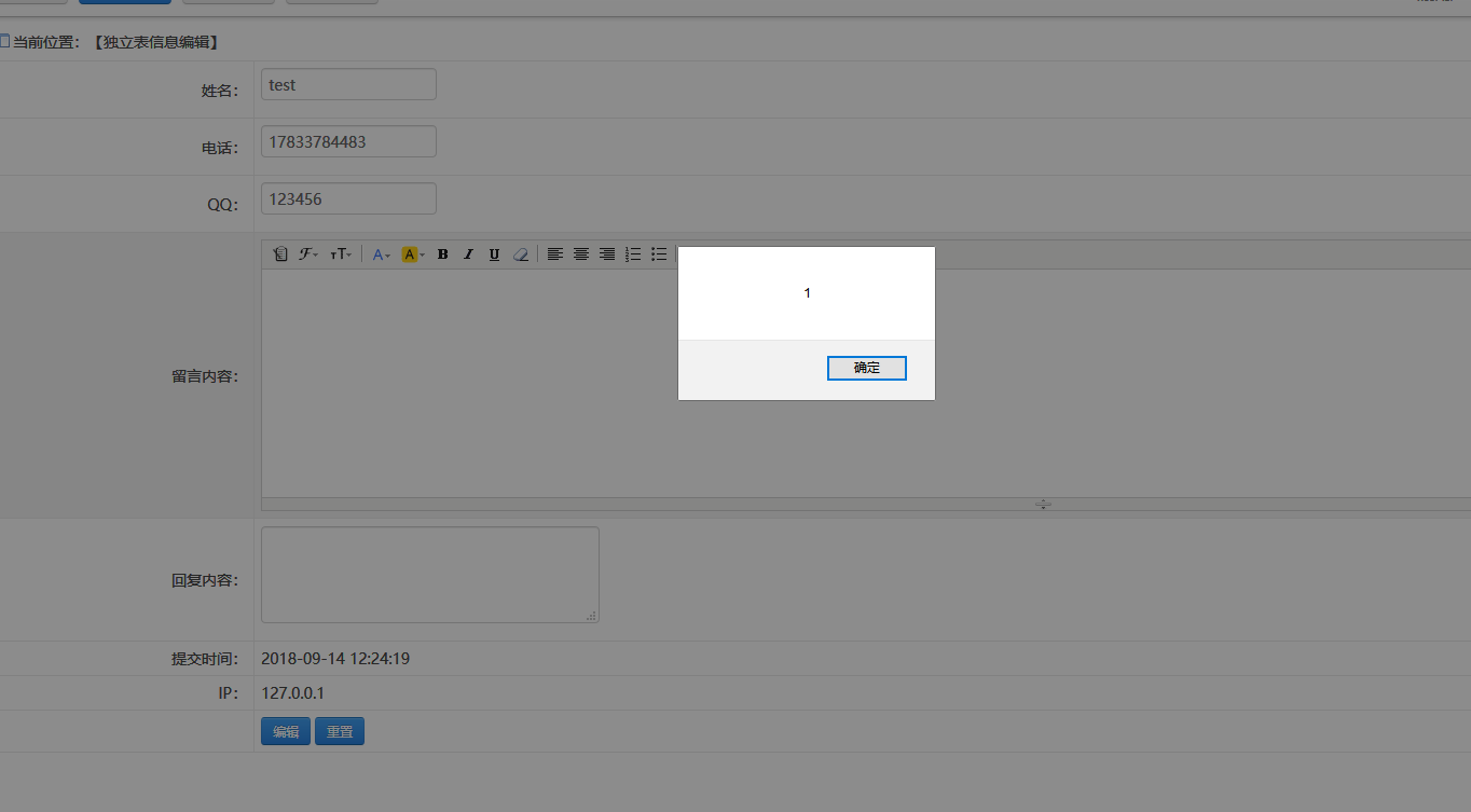 protected/apps/admin/controller/extendfieldController.phppublic function mesedit() { $tableid=intval($_GET['tabid']); if(!$this->checkConPower('extend',$tableid)) $this->error('您没有权限管理此独立表内容~'); $id=intval($_GET['id']);//信息id if(empty($tableid) || empty($id) ) $this->error('参数错误~'); $tableinfo = model('extend')->select("id='{$tableid}' OR pid='{$tableid}'",'id,tableinfo,name,type,defvalue','pid