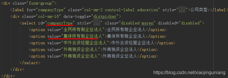 需要先创建select标签,且select下面必须有option标签(option必须还有value,且value必须等于传过来的对应选项的值)