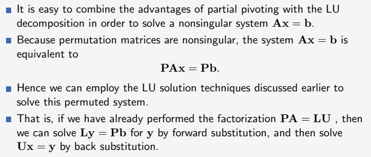 所有矩阵都可以进行PLU分解,PLU分解求解线性方程组的过程如上。