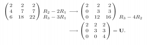 其实我们回忆一下高斯消去法,它的过程就是将一个矩阵逐渐变为一个上三角矩阵,举例: