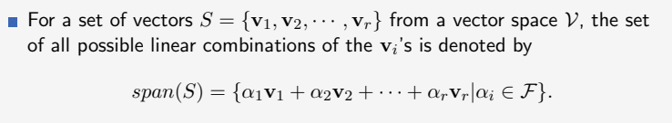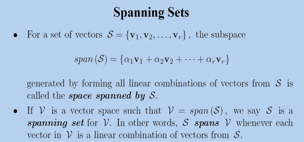 如果一组线性无关的向量的线性组合可以表示这个向量空间中的任意向量,那么就称这组向量张成了这个向量空间。